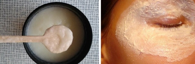 Ďalším receptom na očnú masku je medovo-bielková maska. Potrebovať budete vaječný bielok, jačmennú múku a med. Všetky suroviny zmiešajte do hustej kašičky, ktorú naneste na oblasť okolo očí. Masku necháme pôsobiť cca 20 minút a umyjeme vlažnou vodou. Táto maska je vynikajúca na vyhladenie vrások a dokonca aj osvieži a hydratuje pokožku okolo očí.